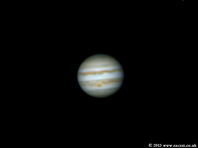 This is two, 2 minute AVI's taken at 10fps, combined and stacked together. I was shooting at a 3 metre focal length, and with the seeing not brilliant, I opted for a longer exposure as the rotational blur wasn't really evident - 27-11-13