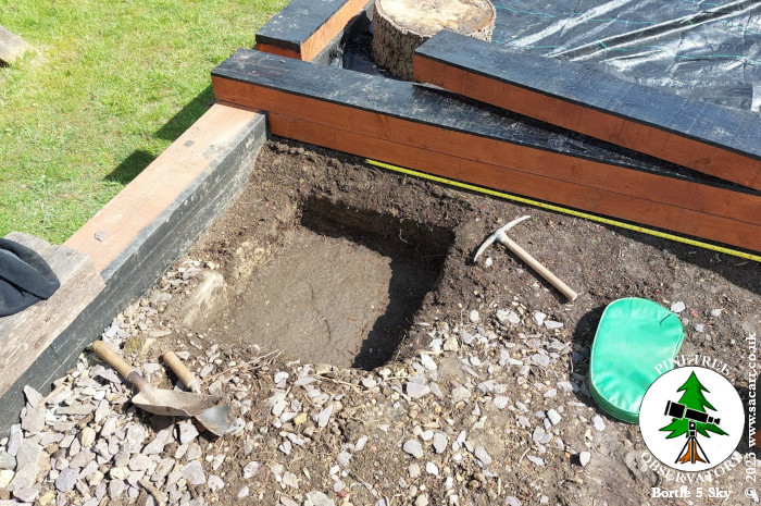 The lawn/railway dividing sleepers were then lifted and a 5 metre square