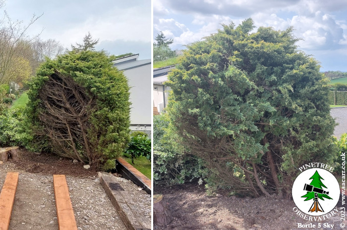 some tree surgery on the conifer bush at the bottom of the garden. When