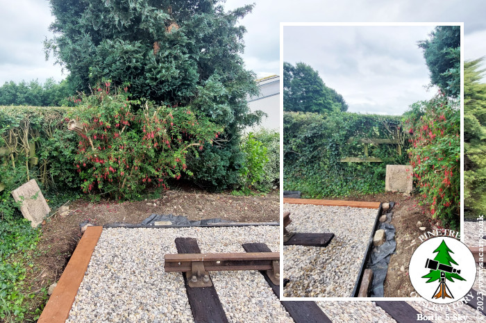 It's not level, as the height of the garden drops from left to right towards the railway, but it's moderately flat now.