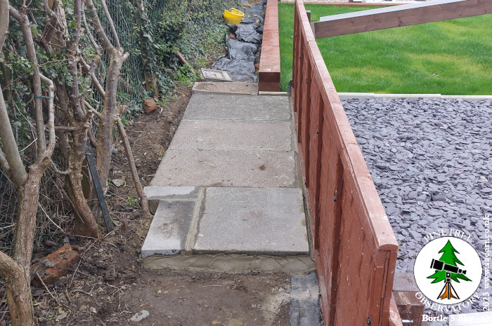 Next, two paving slabs worth of foundations had cement mixed in and packed