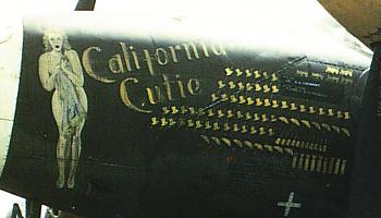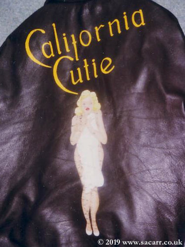 "California Cutie" was a 20th Fighter Group P-38J. This jacket could have done with perhaps a ghostly P-38 as a backdrop to pad out the figure but the design was down to the owner.