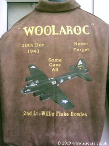 "Woolaroc" is a jacket based on a 92nd BG B-17 lost during December 1943. One of the missing crewmen is honored on the back of the jacket.