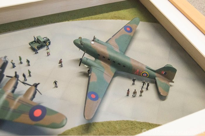 BBMF crews and re-enactors meet RAF veterans and their families at an open day at RAF Coningsby. A 16 x 12 inch beech frame picture.