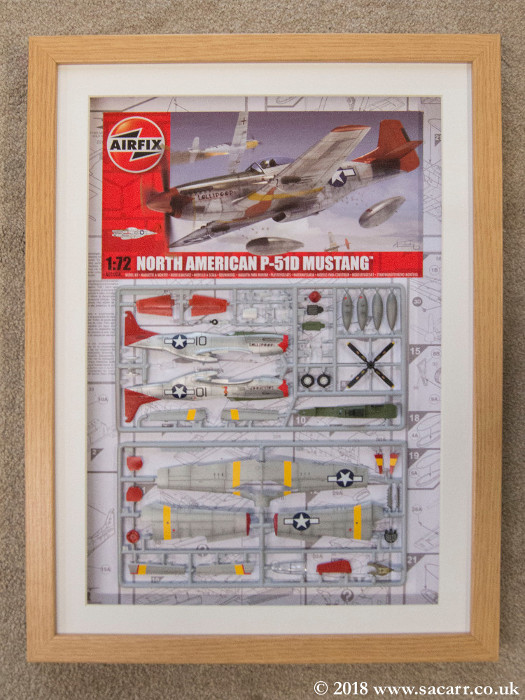 P-51D Mustang 'On The Sprue'. The painted but unbuilt kit presented with the box art overlaid on top of the instructions.