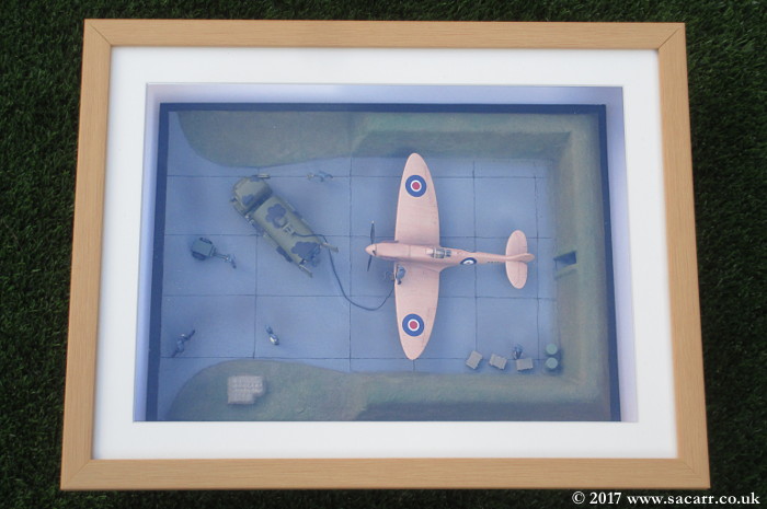 This Spitfire diorama is larger than the usual pictures and is mounted in a 16 x 12 inch frame.