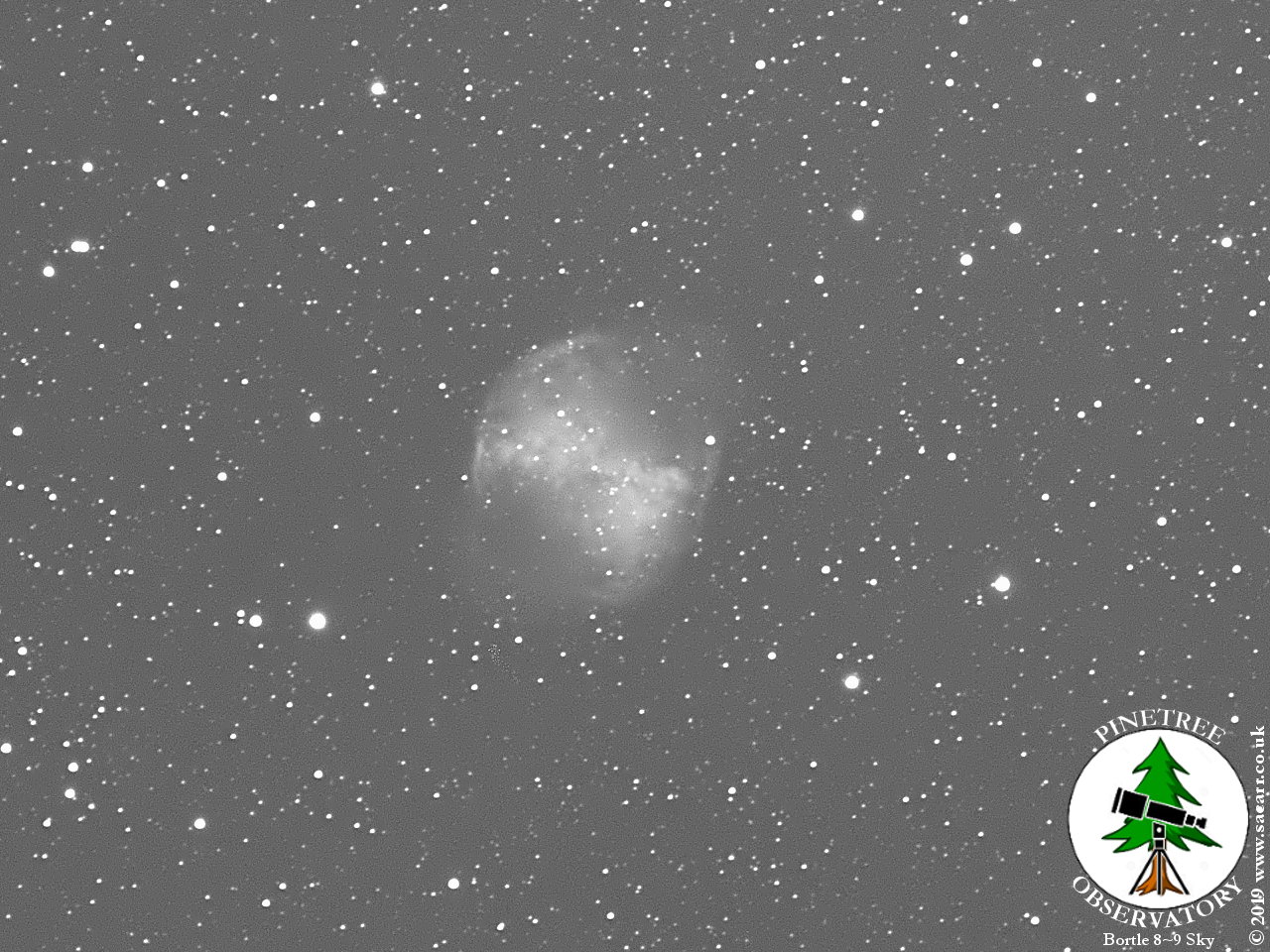 NGC 6853 ) This was a test image, un-calibrated and un-guided, from the new QHY163M deep sky camera. This M 27 totalled 80min 45sec of exposure, mostly 15 to 30 second exposures - 17-12-19