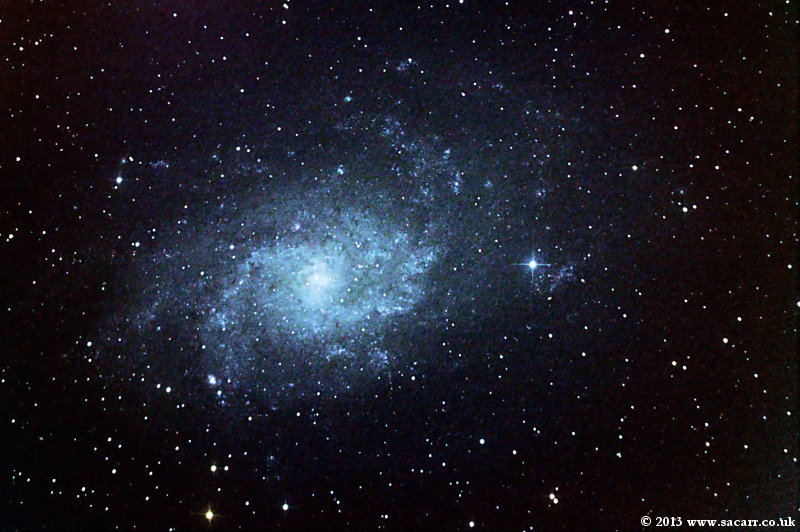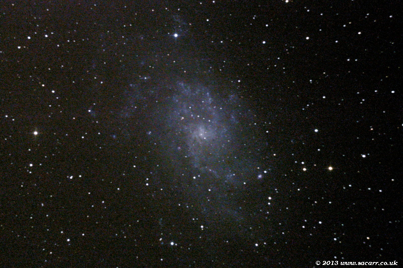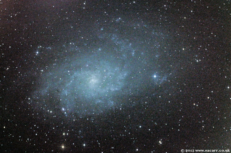 M 33 - 51 minutes guided in 3 minute subs. ISO 400 with darks and flats, taken from Washington. Taken 11-08-13.