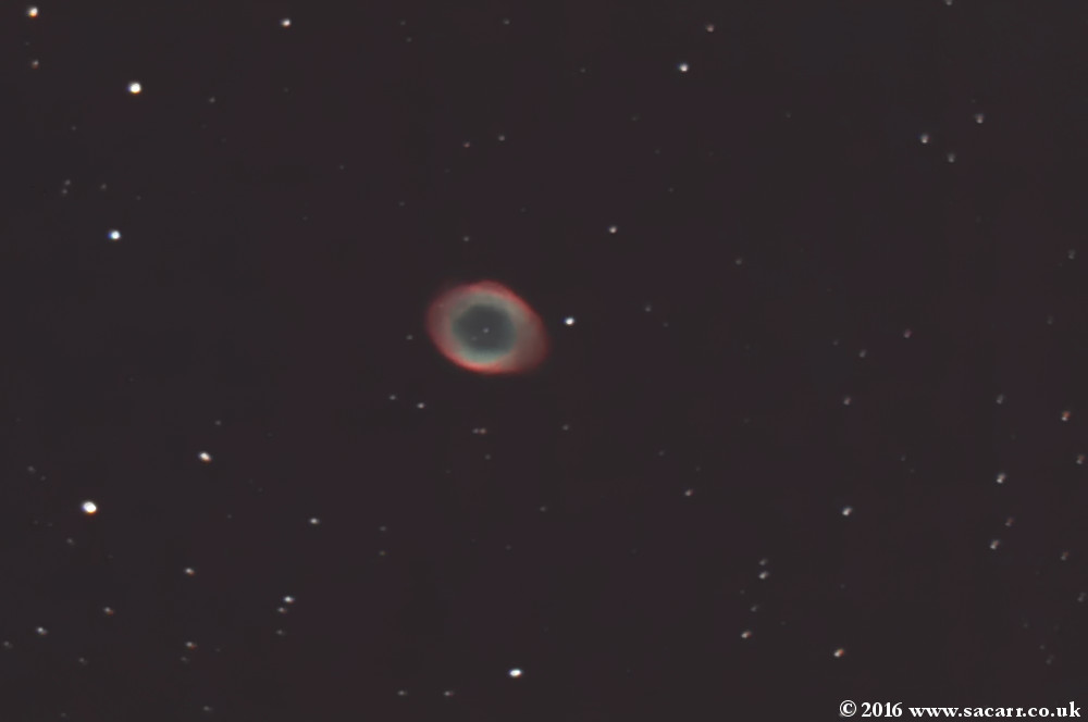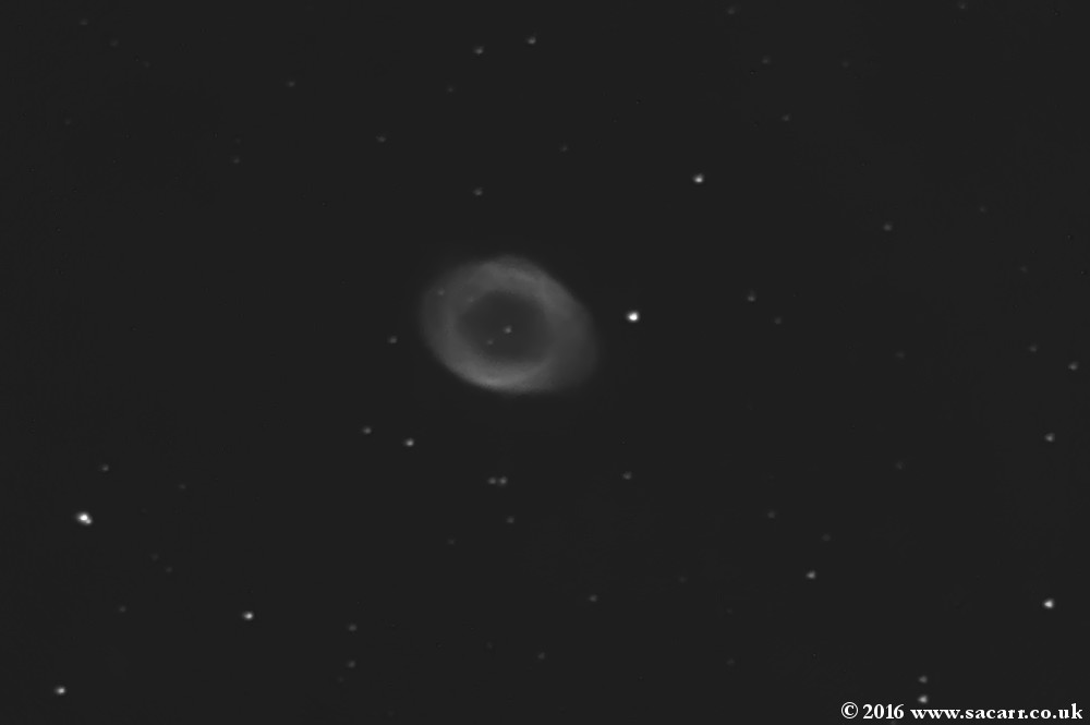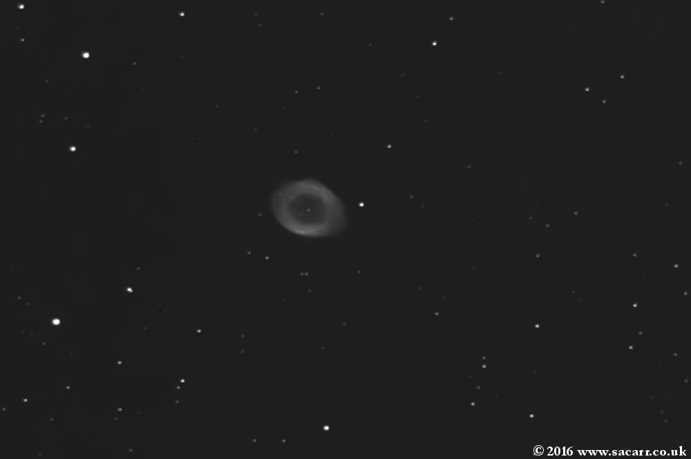 NGC 6720 ) Three M 57 un-guided images, using the ASI120MM-S camera on 26-08-16 The first is at the native 1 metre focal length of the 200PDS scope, with 15 second exposures.