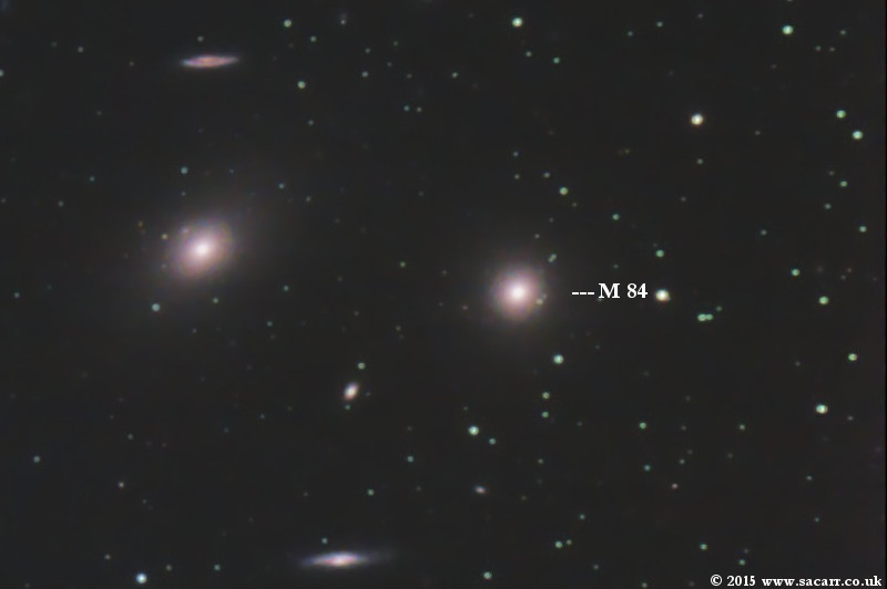 NGC 4374 ) M 84 with around 4 hours exposure. This is a crop from a larger image of Markarian's Chain of galaxies.