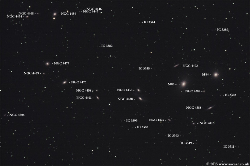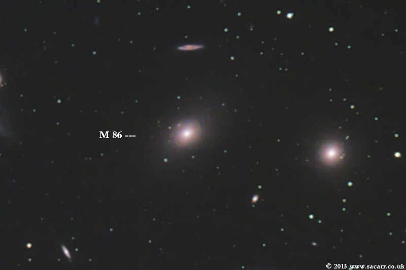 M 86 with around 4 hours exposure. This is a crop from a larger image of Markarian's Chain of galaxies.