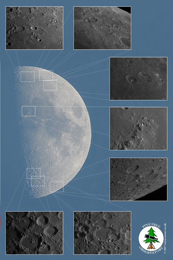 Explorer 200PDS scope. Distance: 365722Km, Phase: 83.1°, Lunation: 7.68 days, Illumination: 56.0% |