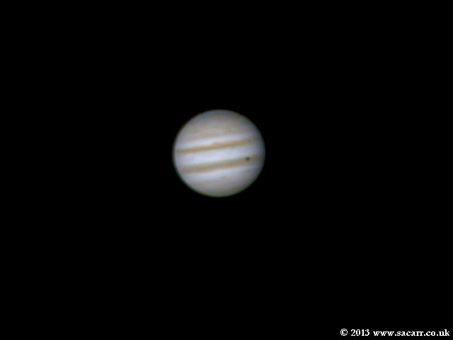 ![]() Jupiter taken at a 3 metre focal length, F15. 90 second, 10fps AVI'a, from around 3:00am to 4:30am. The Camera was the SPC 900 with a x3 Meade barlow. 22-09-13 |