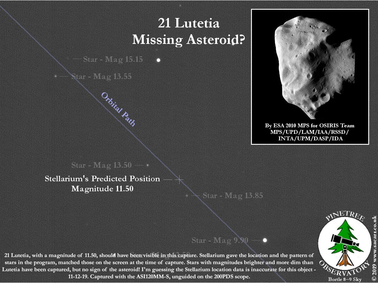 Dwarf Planet - (21) Lutetia 11-12-19