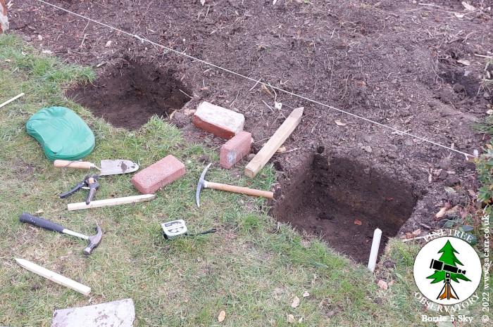 staking out the shed footings. I then began digging out the footings,