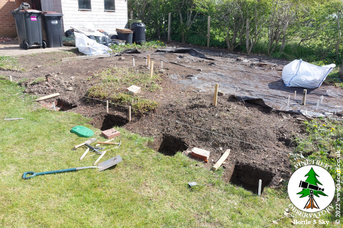 eight of the holes for the footings were dug out and two 12 inch