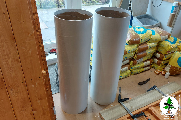 paint the pier tubes with three coats of Hammerite Smooth White paint.