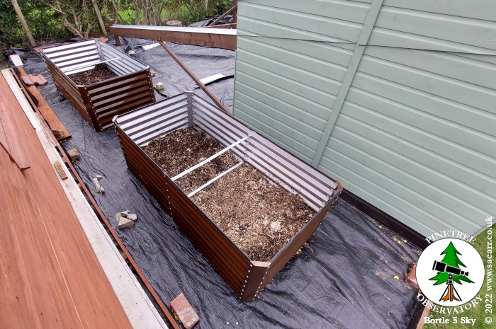 the other sides of the lawn, next to the hawthorn hedge, leaving a gap