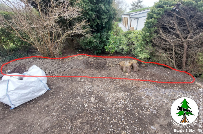 The lawn/railway dividing sleepers were then lifted and a 5 metre square