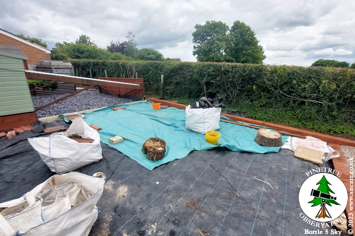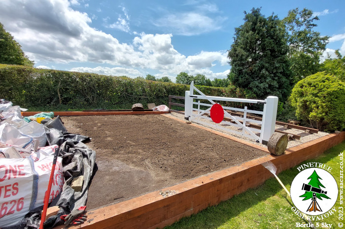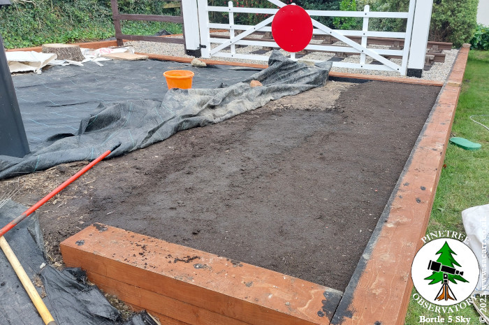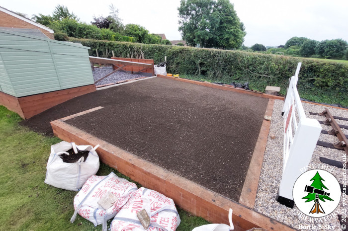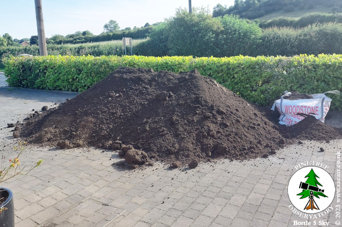 soil. The nine bags on the lawn, have now all been emptied and raked out to flatten the surface. Around 3.5 tons at a guess.
