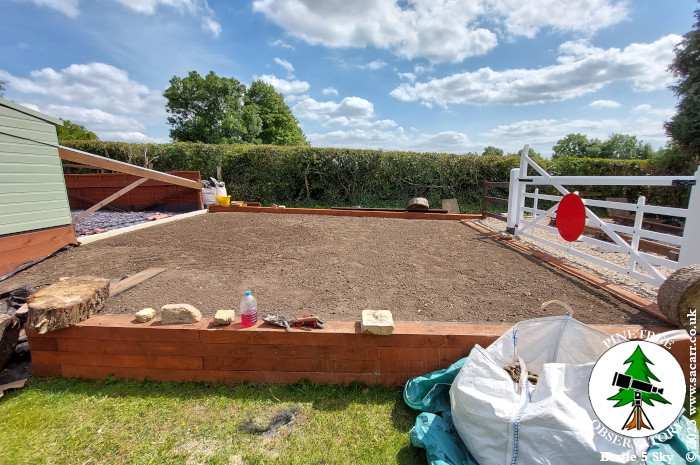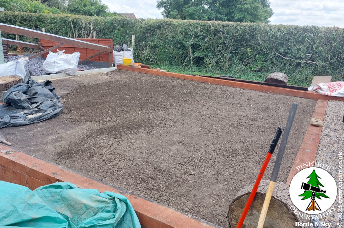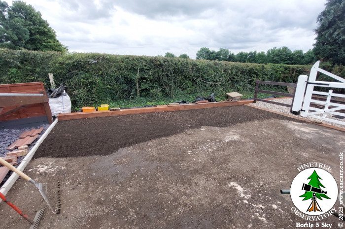 the workshop to the new lawn, then raking it out level. The first layer