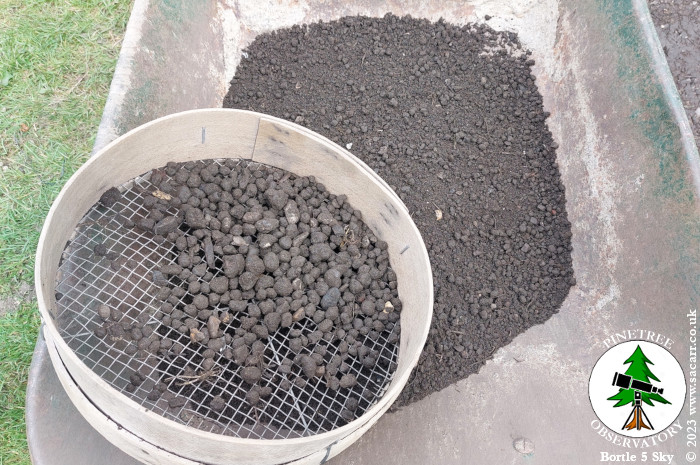 There's quite a few big stones and broken glass to pick out, but it's fine for under a lawn. I'll probably do more sieving for the railway embankment area, since we'll be planting in it.