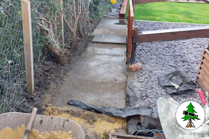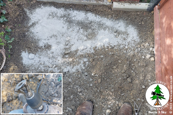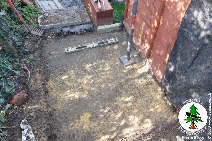 Next, two paving slabs worth of foundations had cement mixed in and packed