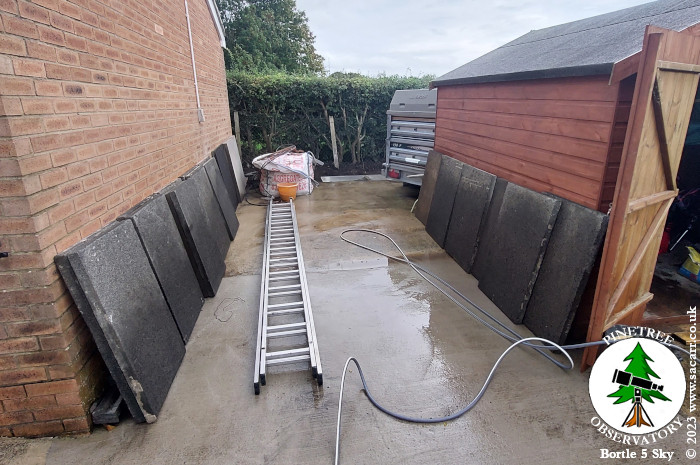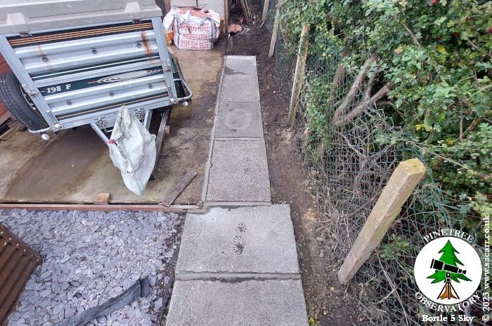 came out and I carried seven paving slabs down to the hedge. Much of the