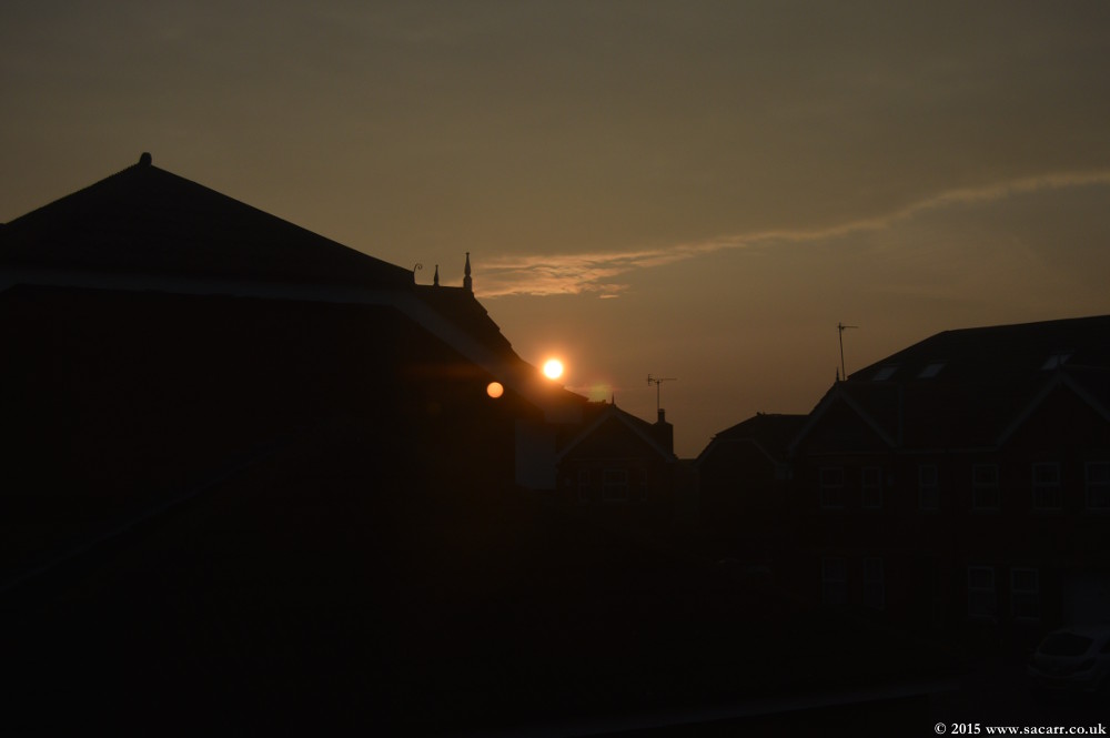 UK Partial Eclipse March 20th 2015 With the forecast at home looking poor, I headed South to Beverley on the evening of Thursday 19th, to stay overnight with my dad. The forecast was looking better in Lincolnshire. The alarm went off at 6am and the forecast was checked again, but this time Lincoln wasn't so good, and Beverley had improved, so we stayed there. The first picture was taken soon after getting up.
