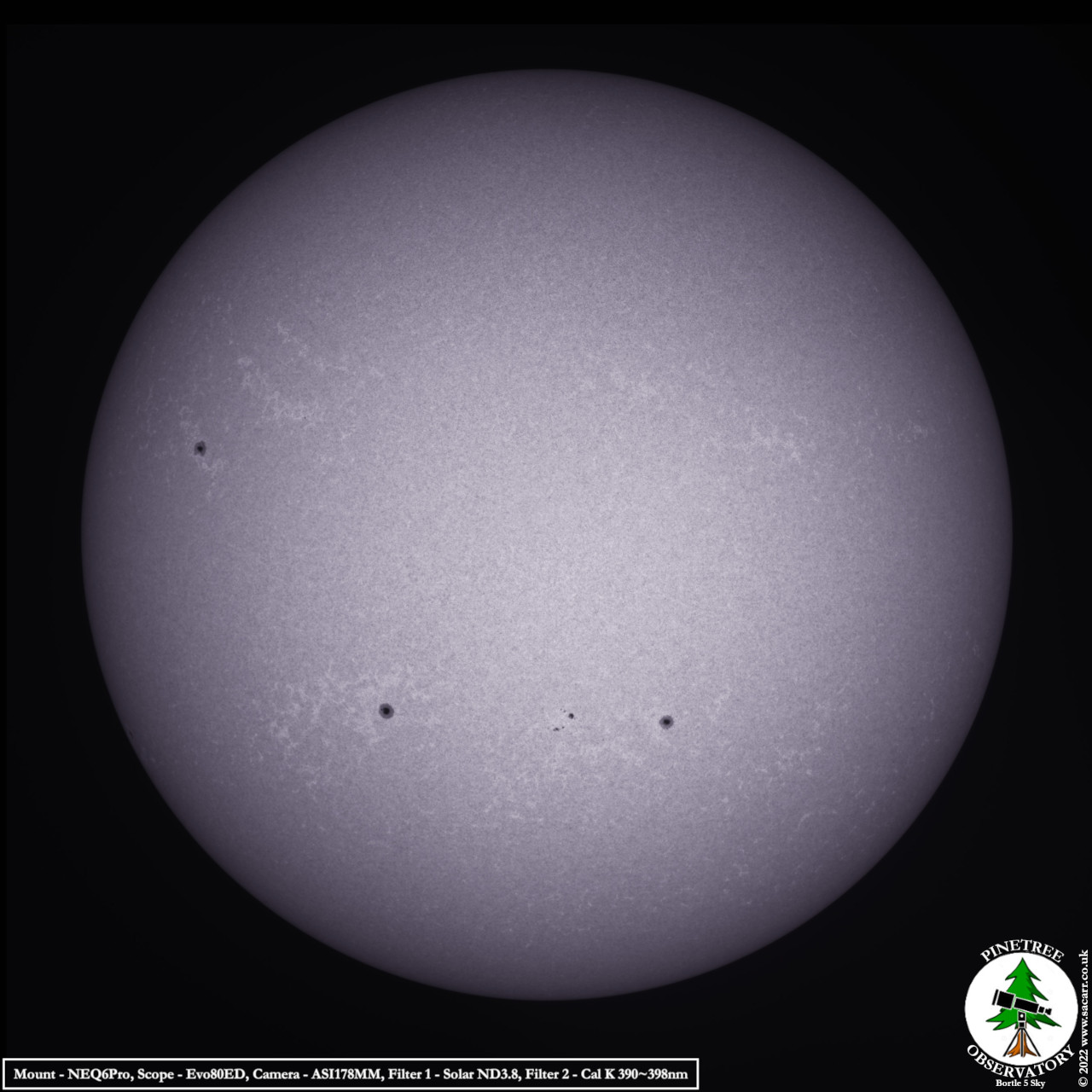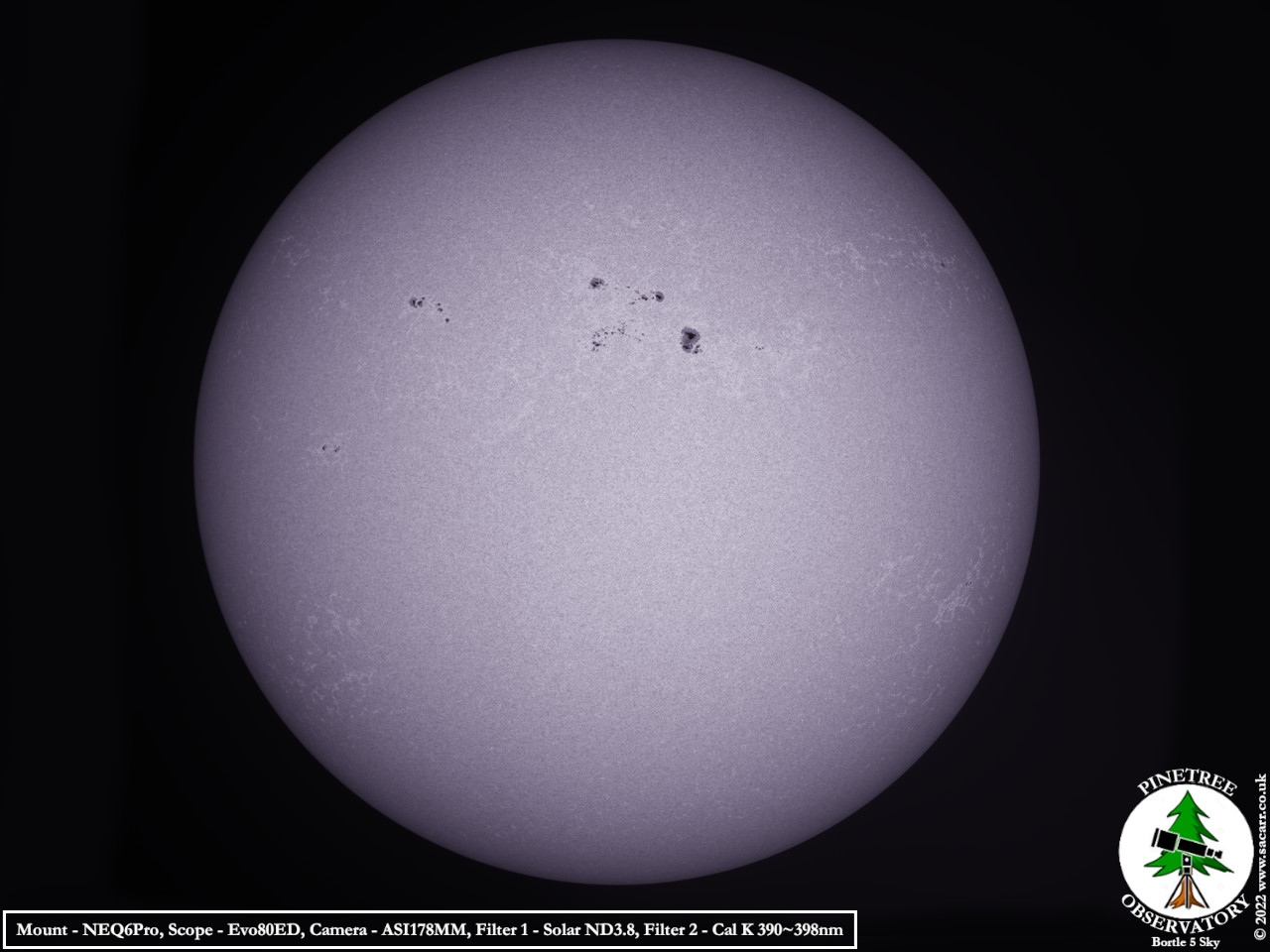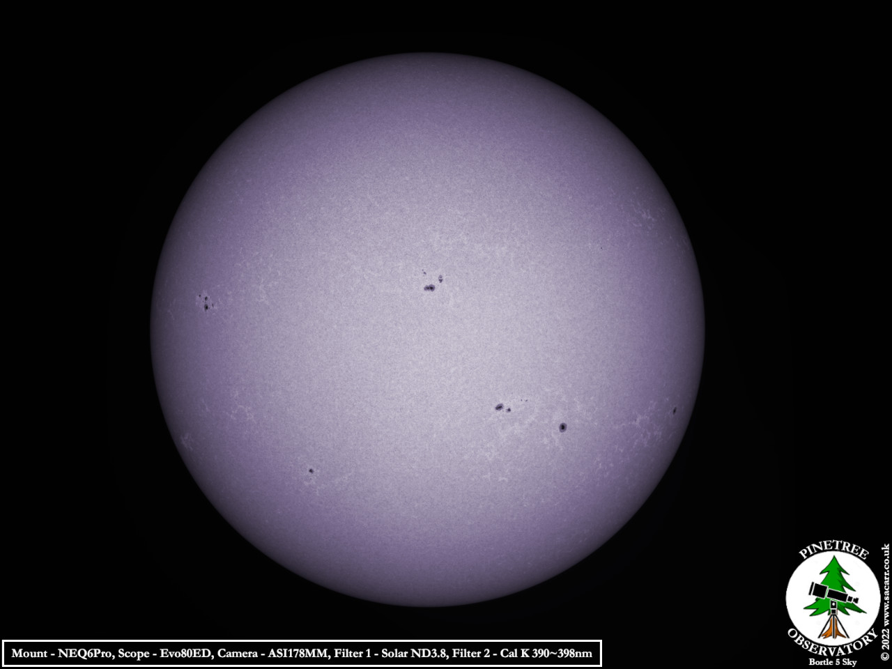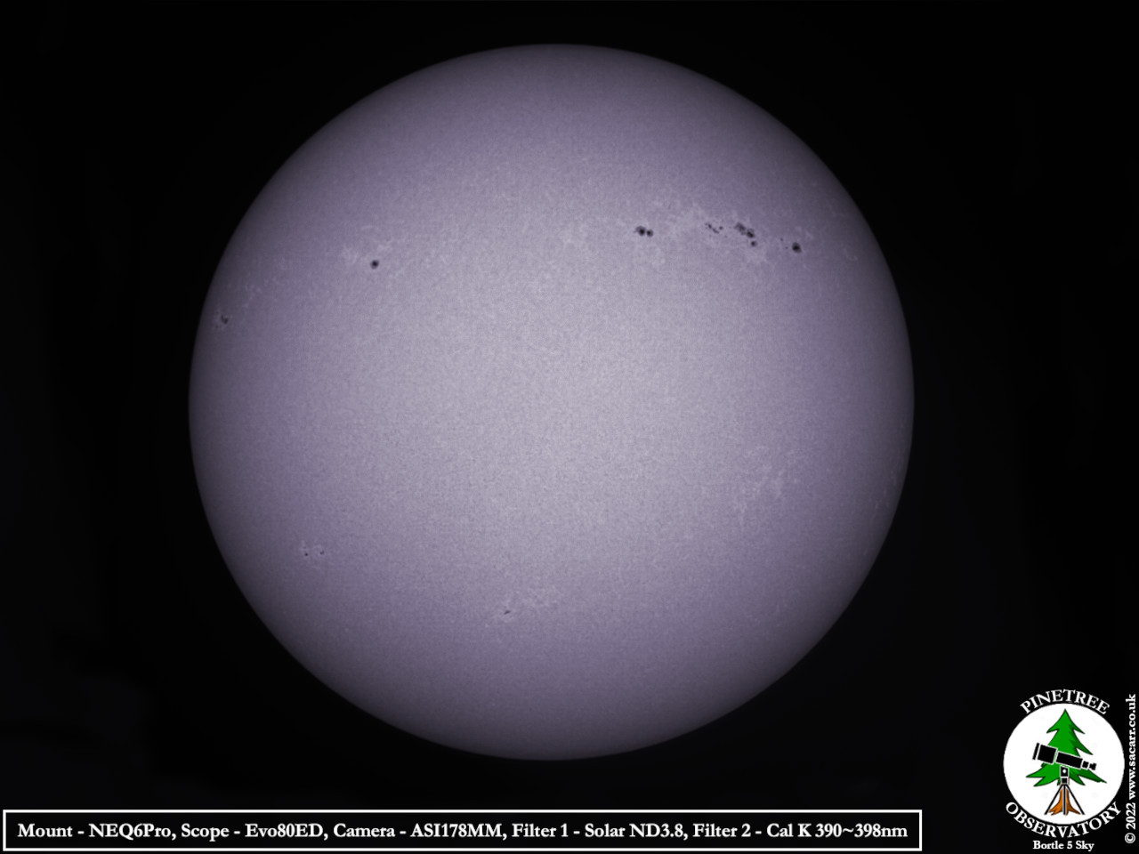 at the new observatory, catching White Light, Calcium K and Hydrogen Alpha