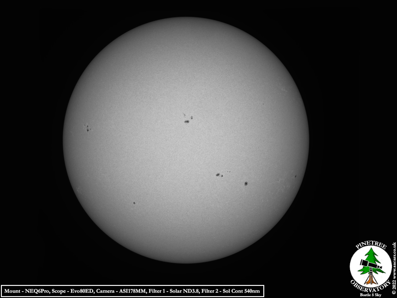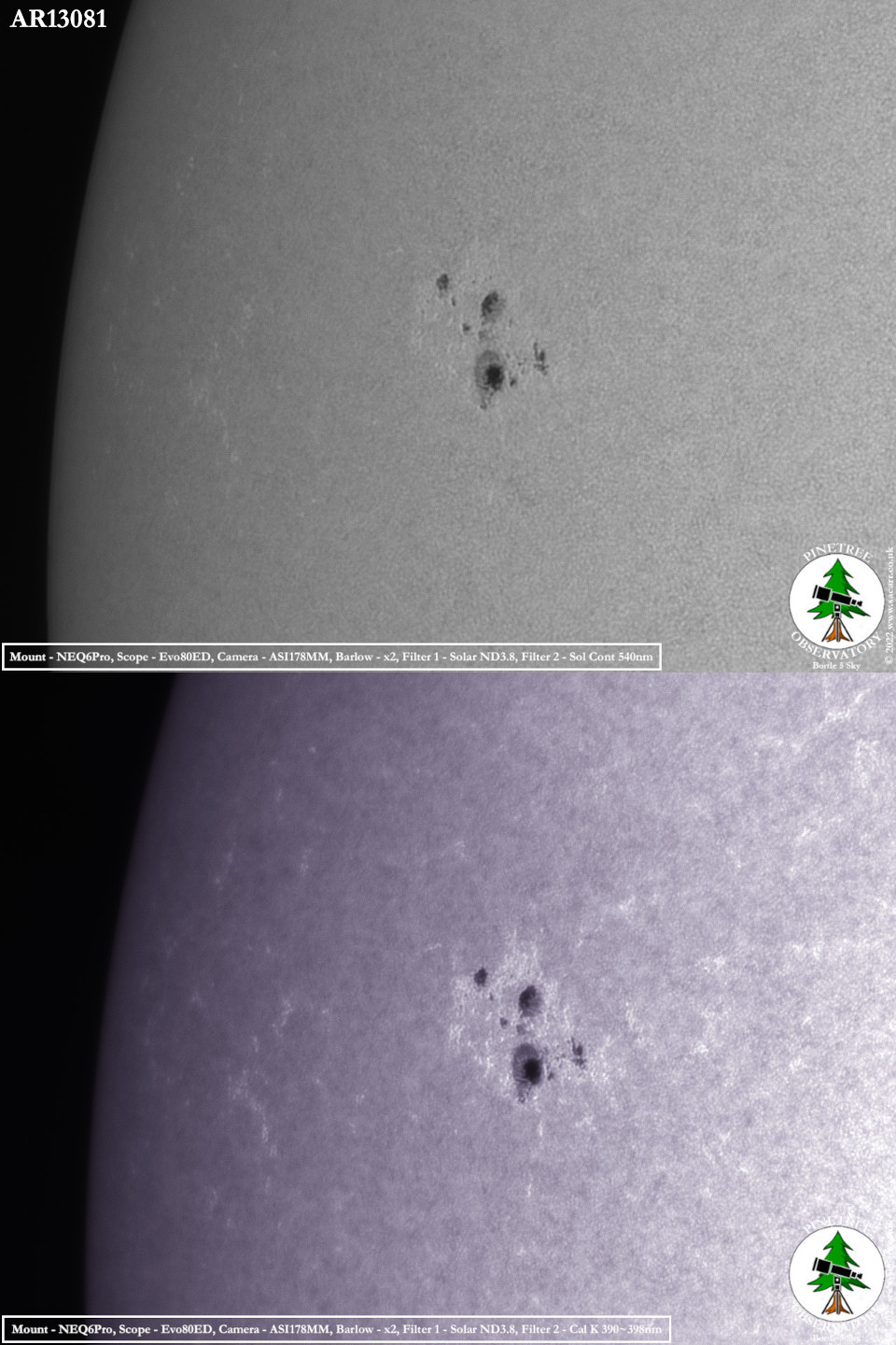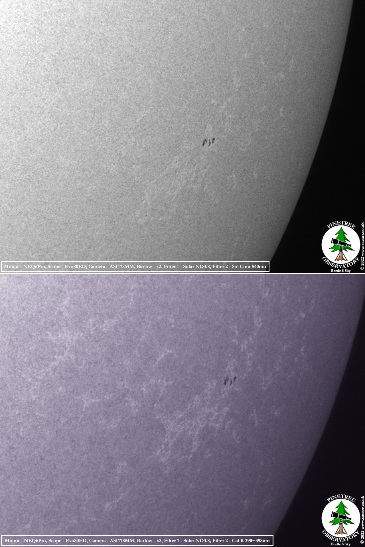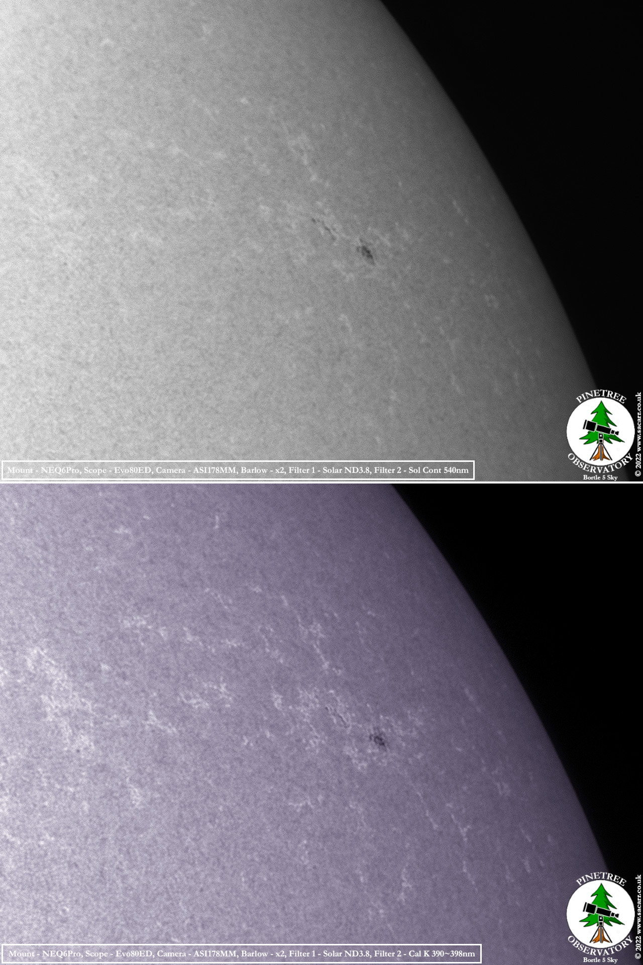 at the new observatory, catching White Light, Calcium K and Hydrogen Alpha