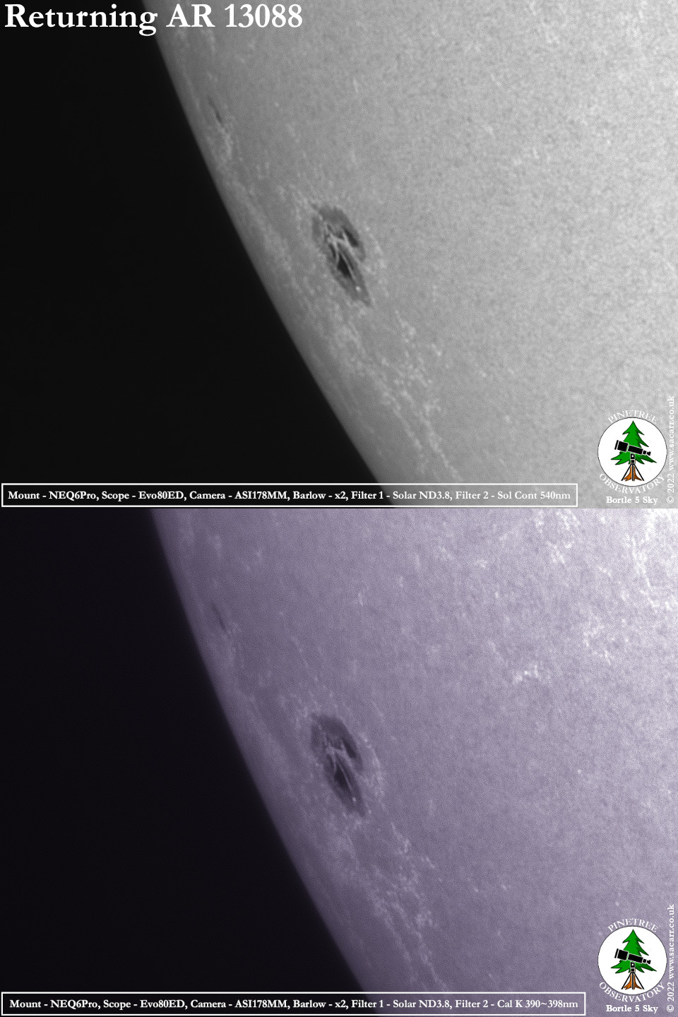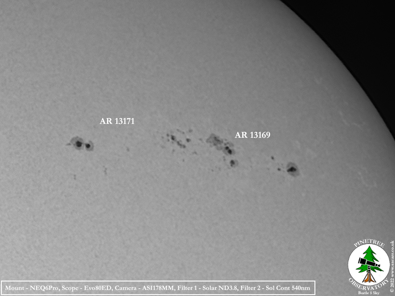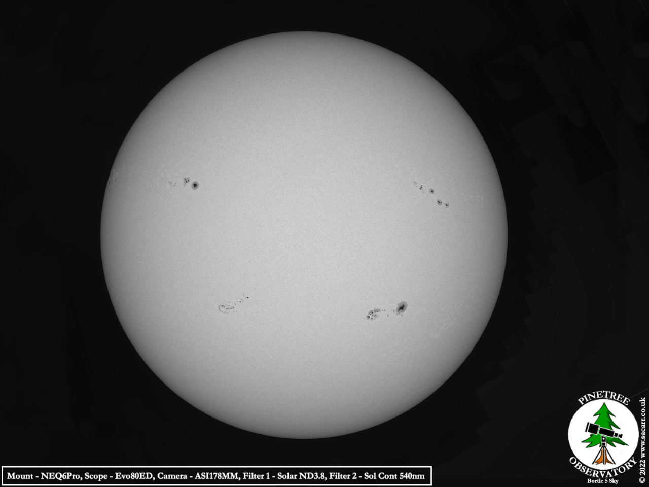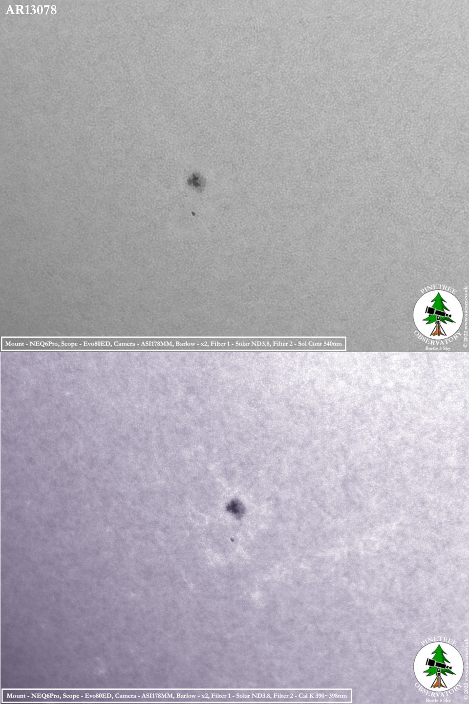 at the new observatory, catching White Light, Calcium K and Hydrogen Alpha