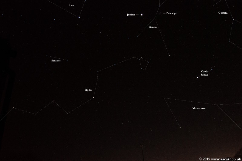 Leo, Hydra, Jupiter, Cancer, Canis Minor, Monoceros & Gemini