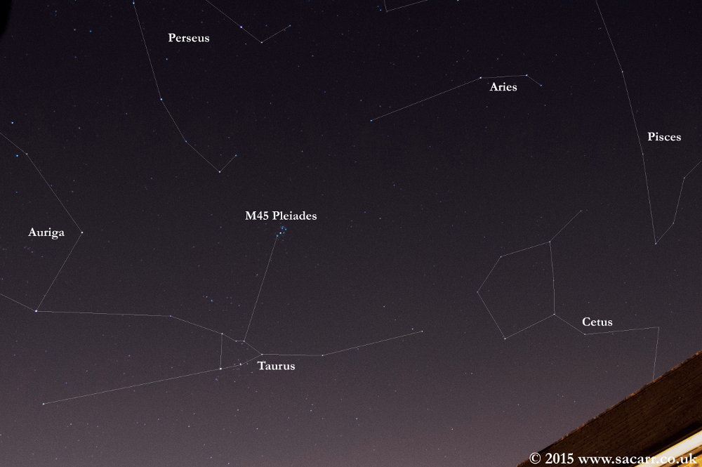 Pleiades, Taurus, Aries, Cetus, Pisces, Auriga & Perseus