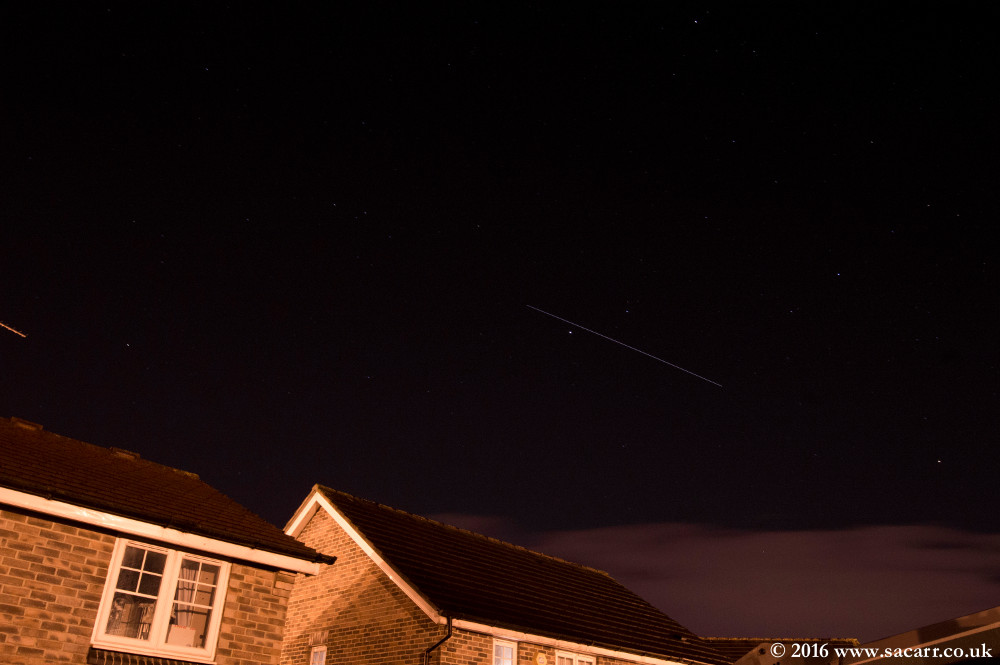 On Thursday April 7th, I caught the ISS again, but in two widefield shots this time. They were 30 second RAW exposures from the Nikon D3200 on a static tripod.