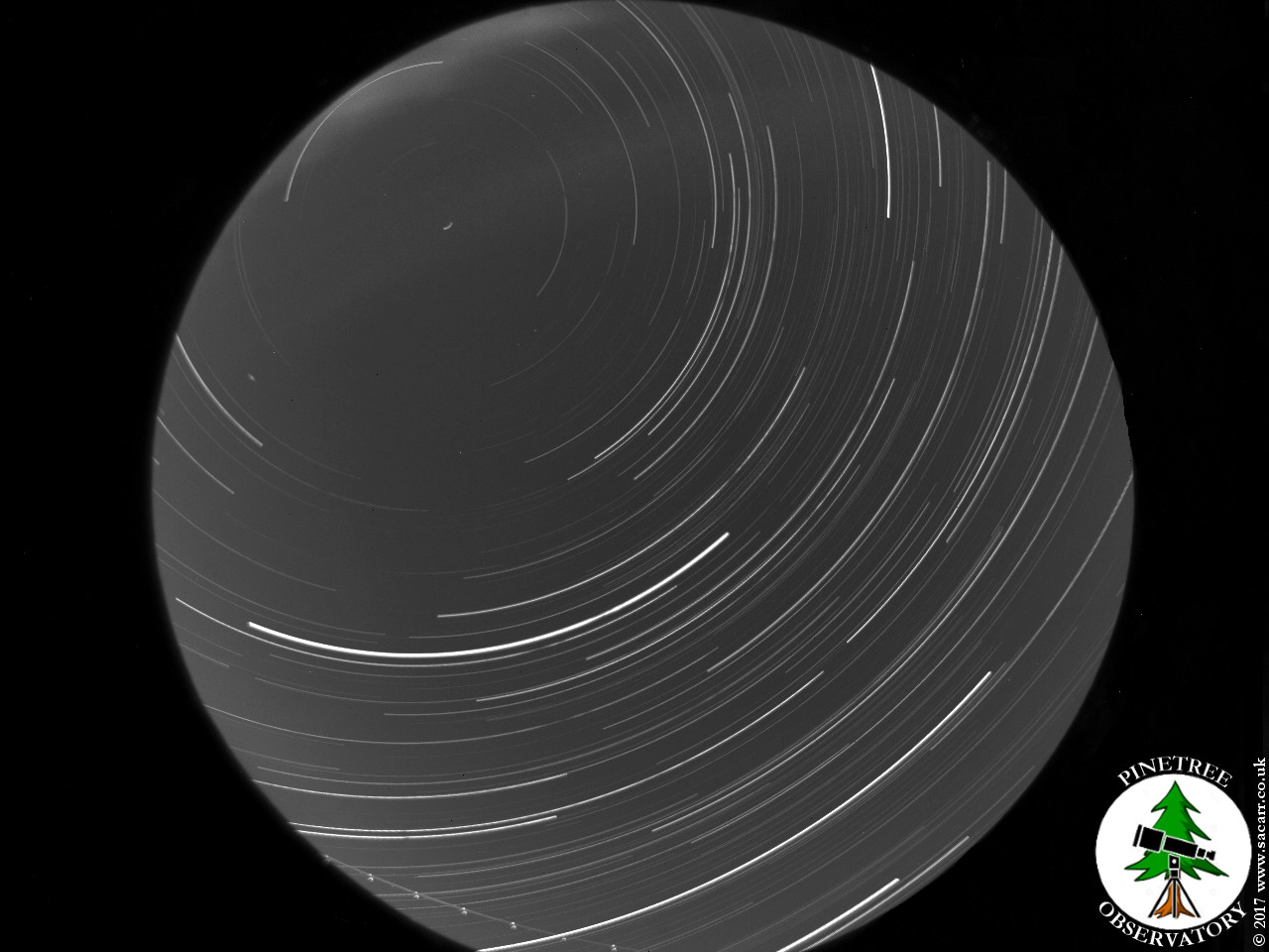 Sky Star Trails I recorded the sky for over six and a half hours on the night of the 14th, but later during the night, passing clouds partially obscured the sky and stars in some exposures. This trail composition spans 4 hours, 58 minutes and 45 seconds, taken in 15 second exposures - 14-10-17