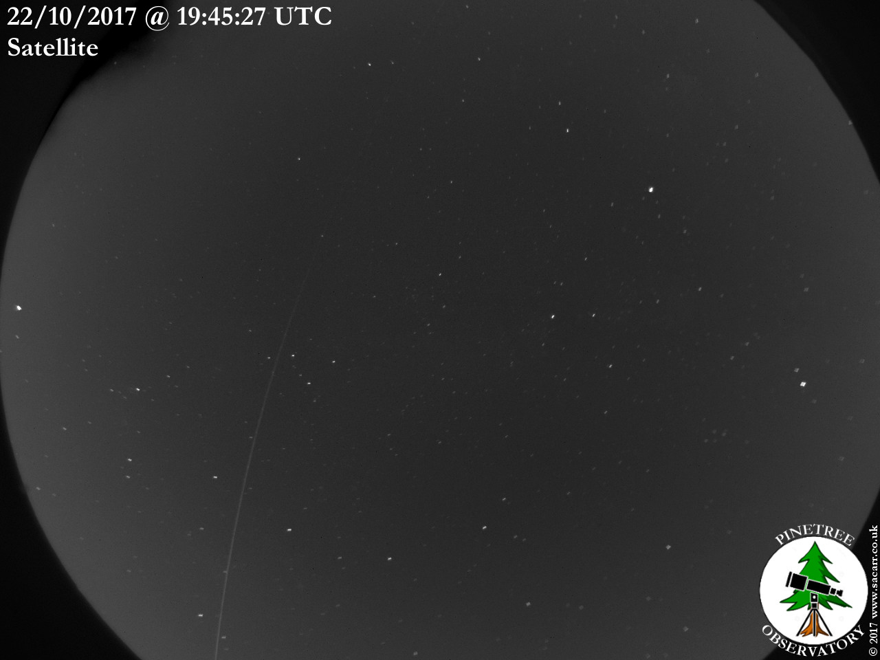 Sky Satellite This satellite trail is very faint to the North West but much more visible in the East South East. I'm guessing that the faint part of the trail is where the satellite is less exposed to sun light - 22-10-17