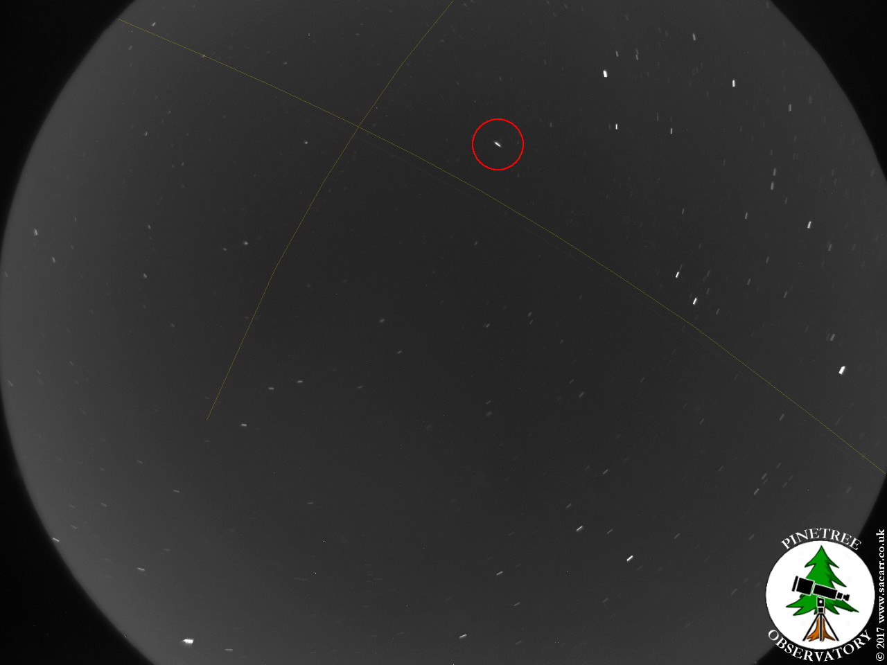 Meteor & Two Satellites The yellow lines trace a parallel path to the very faint satellite trails - 19-11-17