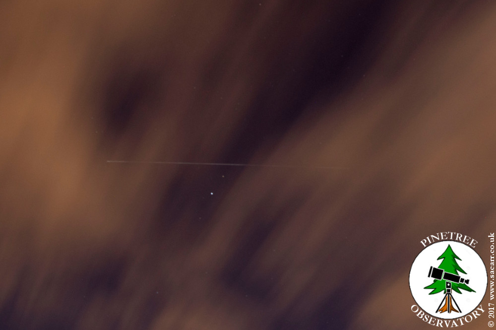 ISS Pass Shortly after capturing the Moonrise, I noticed on Stellarium that the ISS was due to pass in five minutes. I quickly grabbed the tripod and set the DSLR up with the 18-55mm lens and a 30 second exposure. It is seen here passing through the constellation of Aquila - 05-10-17