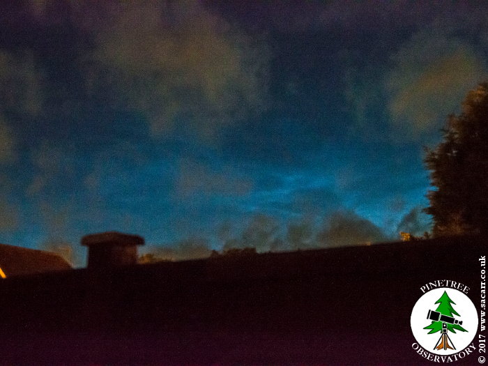 I saw a post on Facebook about NLC's forming, so went out with my DSLR handheld. Due to being hendheld, and hence a short exposure, the ISO was very high, and even with noise reduction on, the image was still very noisy - 15-06-17