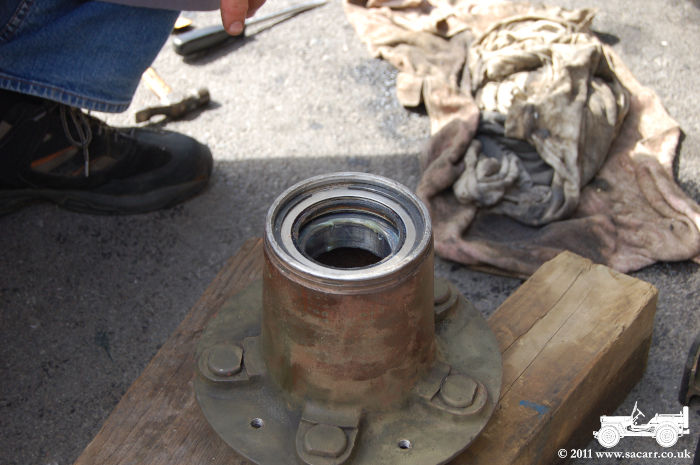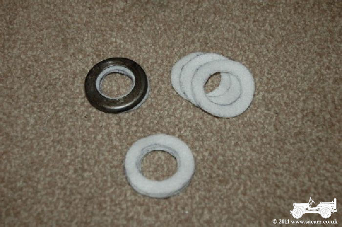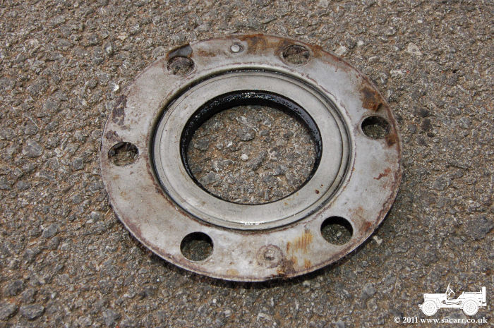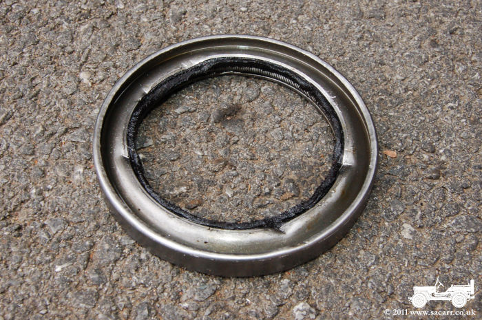 Also shown below is the old rear axle oil seals, The poor condition of the rubber seals can be seen in these photos. |