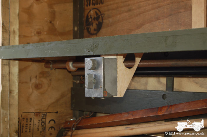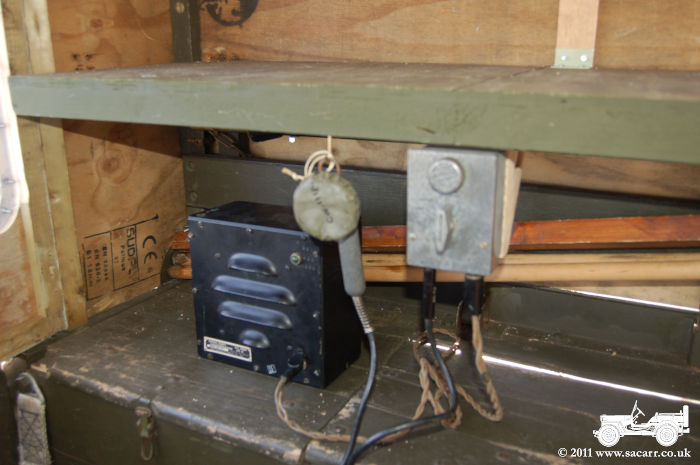 mounted on a bracket under the radio table. To the left, a hook has been fitted