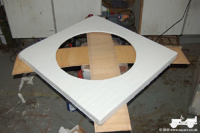 | We've had some really heavy rain this season and the plywood on the frame holding the astrodome had started to delaminate. After gluing down the delaminated areas, I've given it the 'Mosquito' treatment like the roof of the truck, and skinned it with cotton, applied with waterproof PVA glue. Once the glue was dry, it was given a coat of exterior white paint which is also now drying. It could do with a second coat before the dome is fastened back on. | |