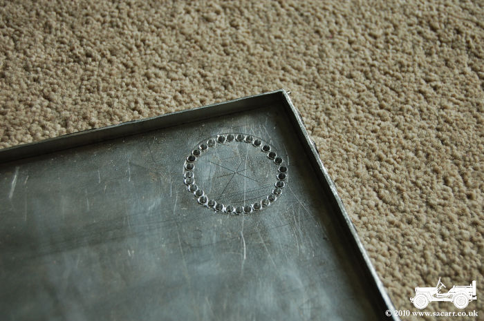 | I need access to the back of the rubber mounts to fasten the bolts, so holes needed to be cut in the base of the mounting tray. This was done by chain drilling holes until the centre piece could be broken out. The holes were then dressed with a file to the final size, as seen below. | |