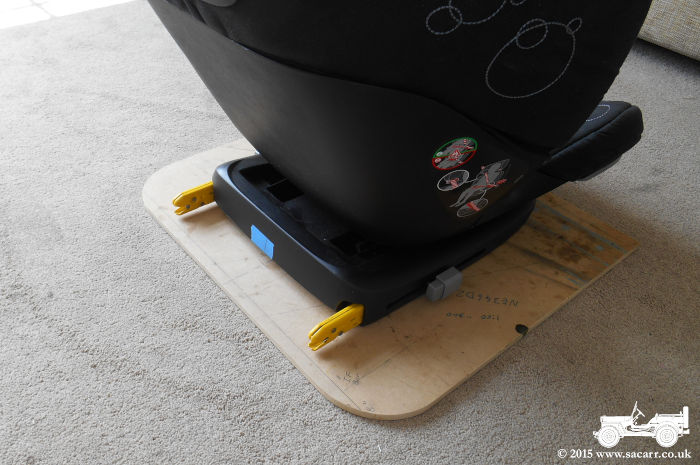 The plan is to build a B-17 pilot's seat, or a metal bucket seat that very much resembles the pilot's seat shown below. This would be big enough to contain and support a modern child's isofix car seat. Once I arrive at a show, the child seat can be removed, a replica pilot's seat cushion fitted, and the seat raised into the observers position under the dome. The seat will need two different supports, one set to firmly fix the seat in the truck, and another to lift it higher and allow it to rotate. |
