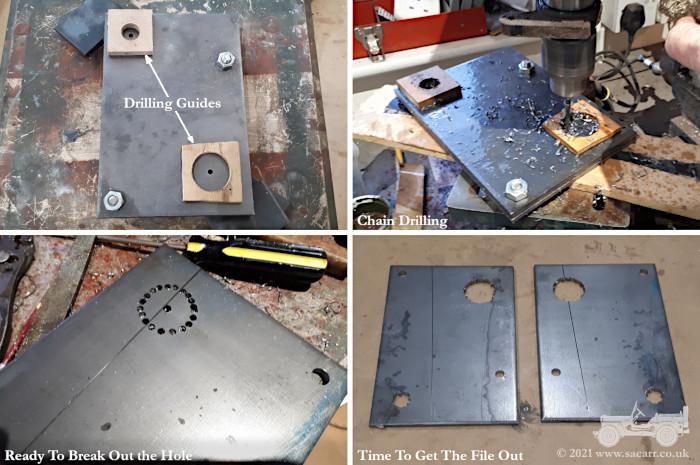 most of the material off and a power file to finish. The smaller hole