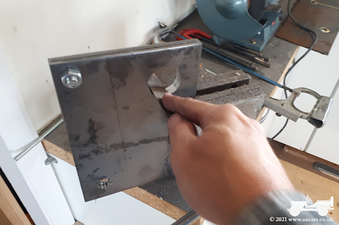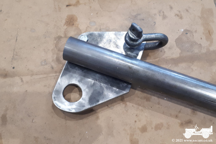 a second bolt to hold the two plates together. The welding distorted them slightly, so the additional bolt in the lower half helps to keep them together. Three hooks were welded to