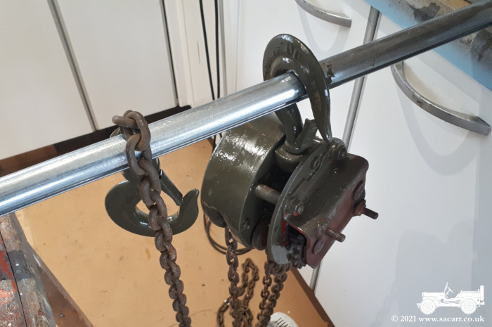Lifting one of the bars up, I tried to get an idea of the angle and height if the crane was lifted high enough for the tailgate to close. At events like Beamish where we can drive around, I'd like to be able to do it without dismantling the crane. |