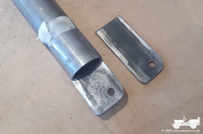 The plates were then separated and the edges all cleaned up with the belt sander and a small file to make sure there were no sharp edges or swarf remaining. The picture below shows the plates with the A-Frame bar positioned on top. The bar needs a tapered cut for the plate to mount on to, but I need to jig it all up in the back of the truck to get the angles correct. I had thought about turning the truck around today, but had nobody to help guide me out of the narrow door, so I'll probably do that tomorrow. The only other jobs done today was giving the hoist and winch another coat of olive drab. |