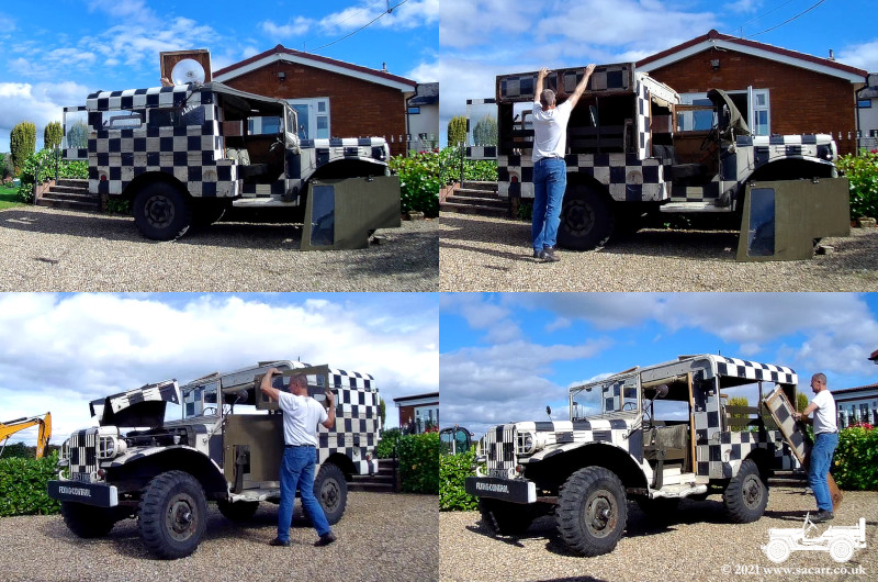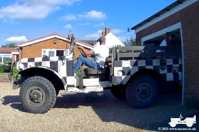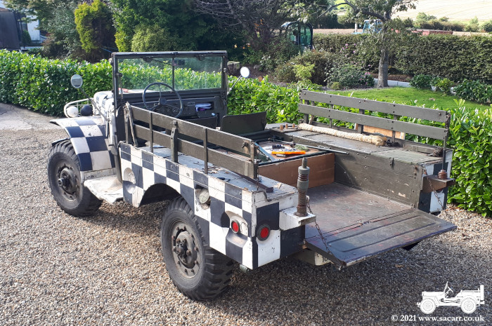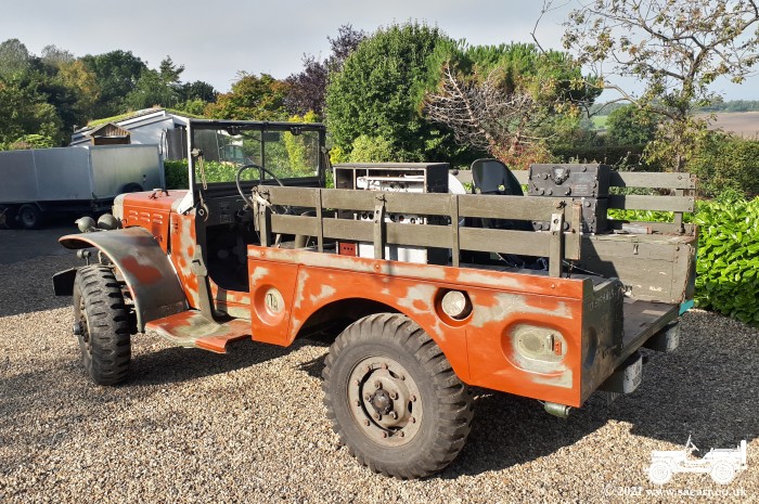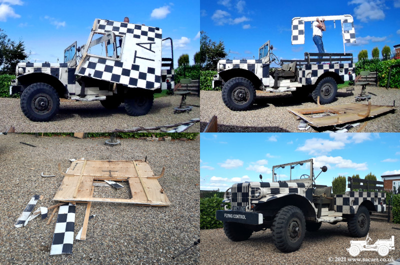 16th - Dodge Body Tear Down It's funny how plans can rapidly change. We've still no word on when our builders will show up to modify the garage door openings. With Autumn and Winter just around the corner, I wanted the Dodge indoors sooner rather than later. Of course, as it stood, it wouldn't fit. After Beamish, I'd also decided that after 13 years of being a Flying Control vehicle, it was time for a change. If I lived in 8th Air Force country, there would be plenty of airfield events to attend, so I'd be unlikely to make a change. However, I also got fed up of ignorant parents telling their kids, "Oh look, that one's an ambulance". Quite why "an ambulance" would need a windsock, meteorological instruments, a flare pistol and aircraft radios escapes me! This change opened up a possibility. If the Dodge was no longer going to be a Flying Control truck, it no longer needed the wooden body on the back. If that was the case, with the canvas roof bows removed, the Dodge should fit in the garage without modifying the